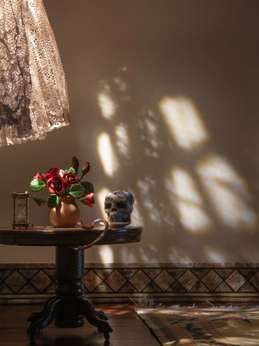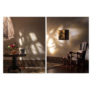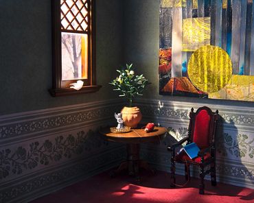 Inspired by the Catholic faith and its traditions, mystical theology, and texts regarding states of the soul and its longing to connect with the divine, Chambers of the Heart, an ongoing body of work, marks a pivotal moment for me as I investigate a different type of interior- the one that explores the soul. These works continue the use of diorama scaled sets that I build, light, and photograph.