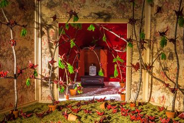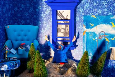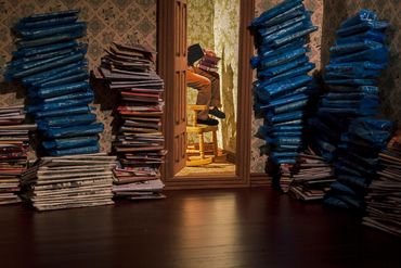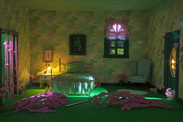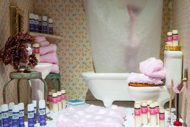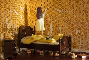 In this series of photographs, Under One Roof, miniature sets are constructed that reinterpret various individuals' stories within private spaces. Inspired by psychological projection tests from the 1940s, the figures in the scene are staged photographs that are cut out and inserted into the rooms. The images become a fantastical merge of play and contemplation, where the imagination meets fantasy and reality, and acting out these scenarios allows for play in learning about the past histories of a location. By combining multiple stories from real life, literature, and cinema within a single image, these scenarios question how psychological disorders can manifest themselves in the built environment and how fictional characters affect popular opinions of those who struggle with these diagnoses.